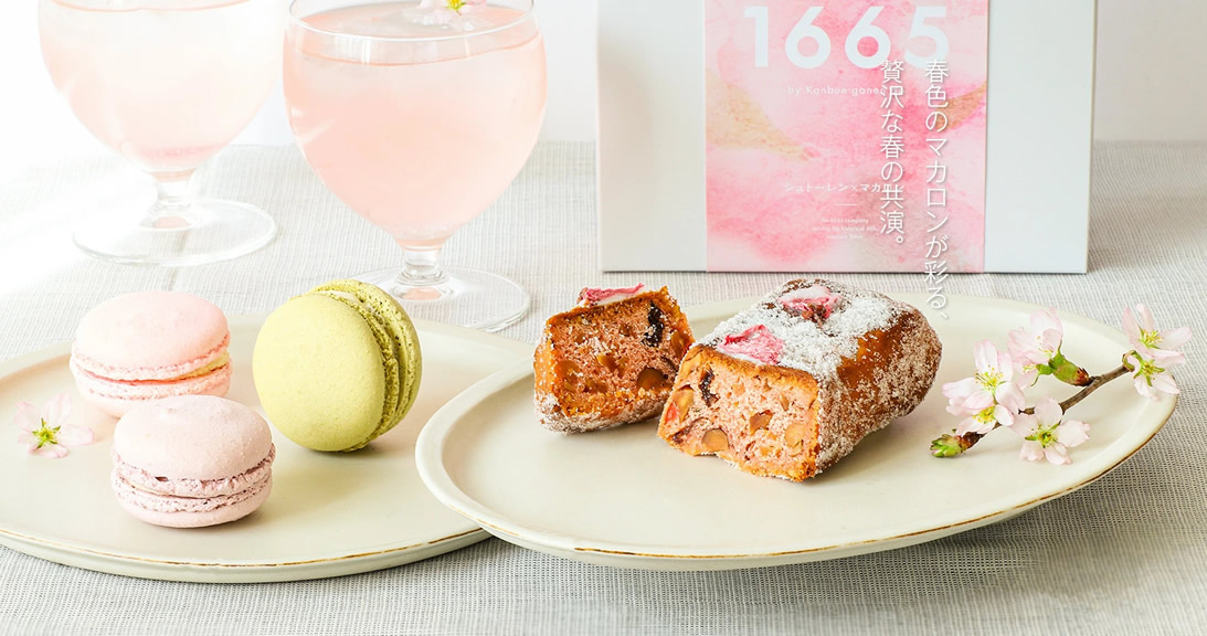本日3月19日より寛文五年堂の新ブランド、発酵スイーツ「1665」(イチロクロクゴ)より春限定の新商品、心ときめく「和」と「洋」の彩・桜香る春色スイーツセット「シュトーレンとマカロンのセット 春仕立て」発売開始となりました。